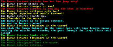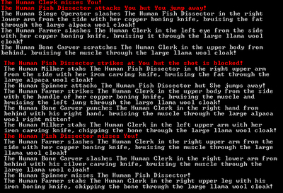 WTF. I guess they did care. I turned around to talk to someone else behind me and the clerk takes a cheap shot by trying to punch me in the head. I dodge out of the way and now the entire building full of people has turned into a loving knife fight to the death. They're all slicing the fucking out of each other.